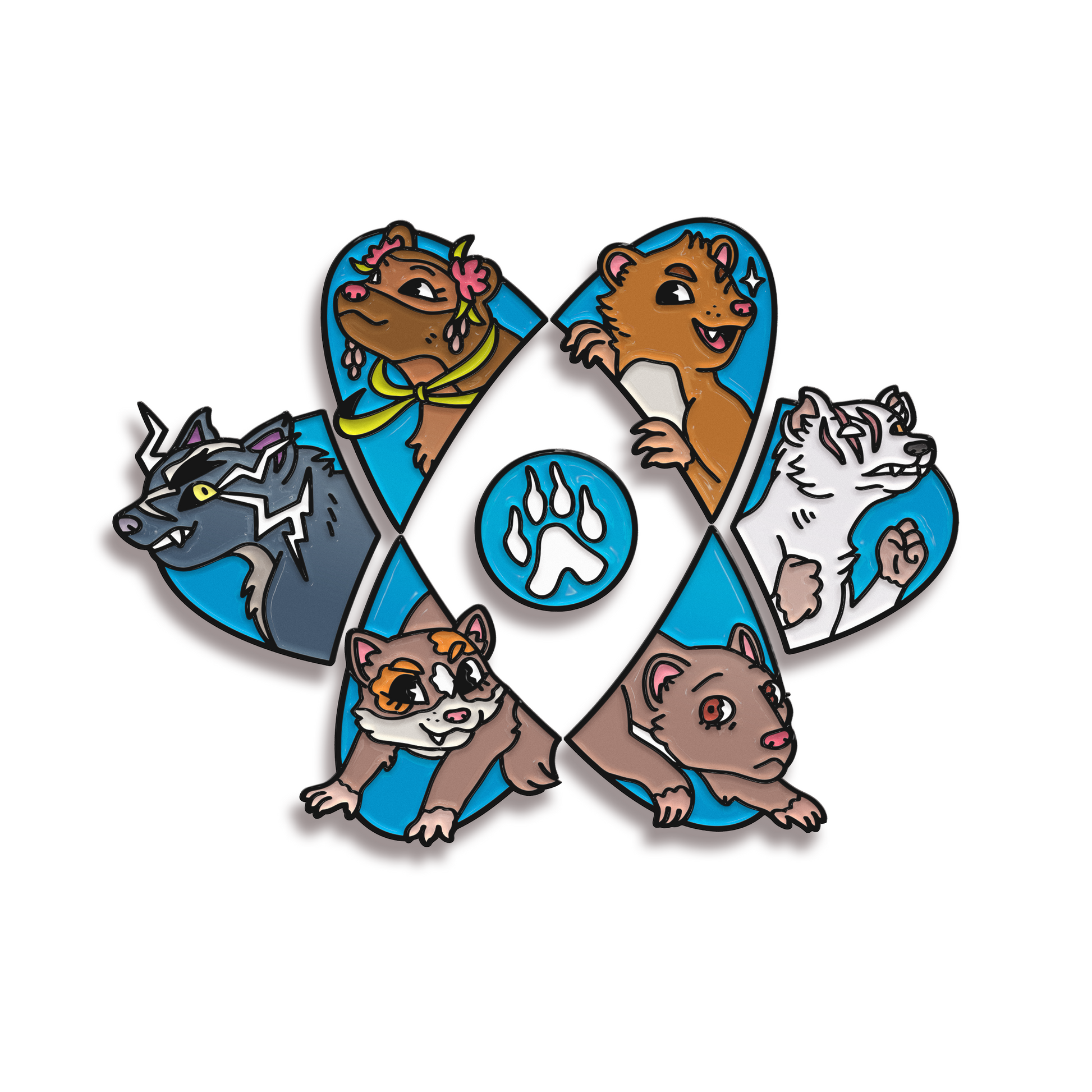 Don’t let their adorable, fuzzy faces fool you, there's more to the family of stupendous stoats from Dimension 20: Burrow’s End than meets the eye. Get the full set to get the paw print pin! Art by Carly Monardo @whirringblender.
