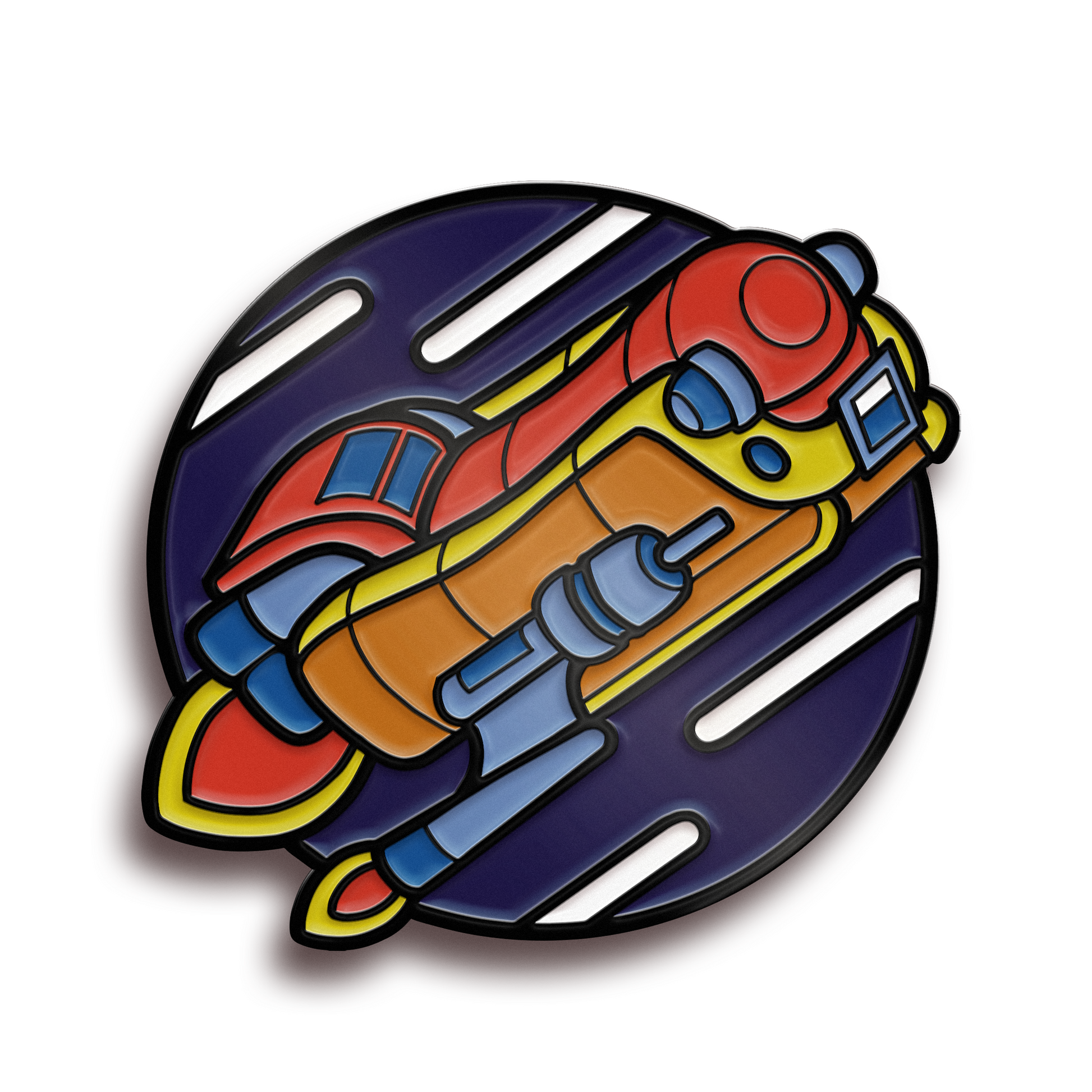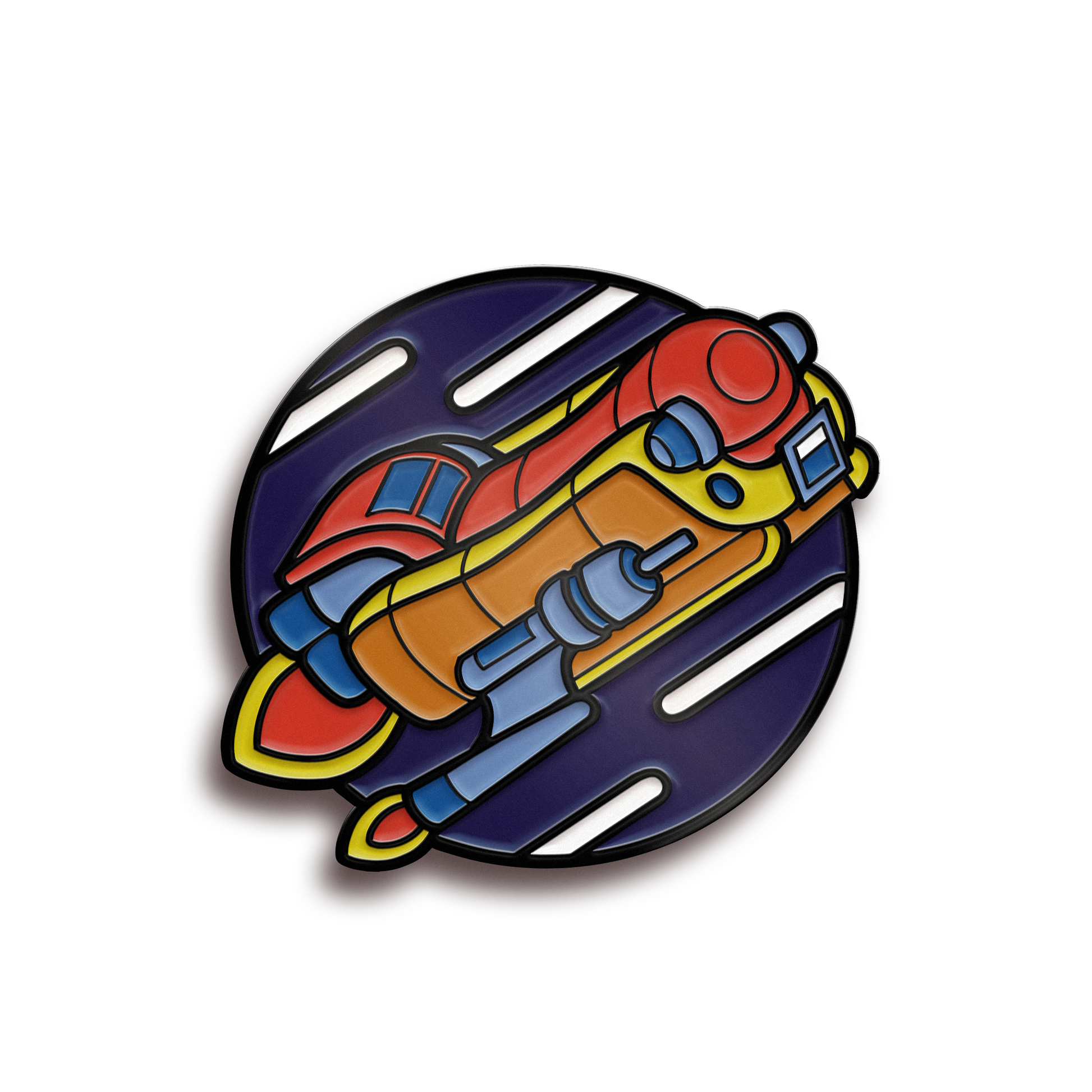 It's the Red Hot! Or, the Blue Cool? Actually, it's The Wurst! Well, whatever callsign it's currently registered under, it's the hot dog-shaped ship featured in Dimension 20: A Starstruck Odyssey, now as an enamel pin designed by Ali @devildaisies!This pin is 1.25" long with two pin posts and butterfly clasp pins.