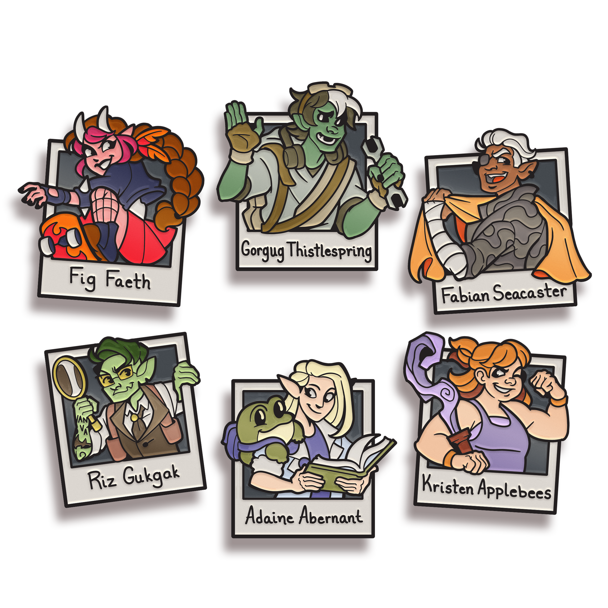 The Bad Kids are back and older than ever! Now upperclassmen at the Aguefort Adventuring Academy, the class that kicked off Dimension 20 are facing new challenges in their Junior Year. Therefore, it's only right that we made them new pins to commemorate the third season of Fantasy High! Art by Ali @devildaisies