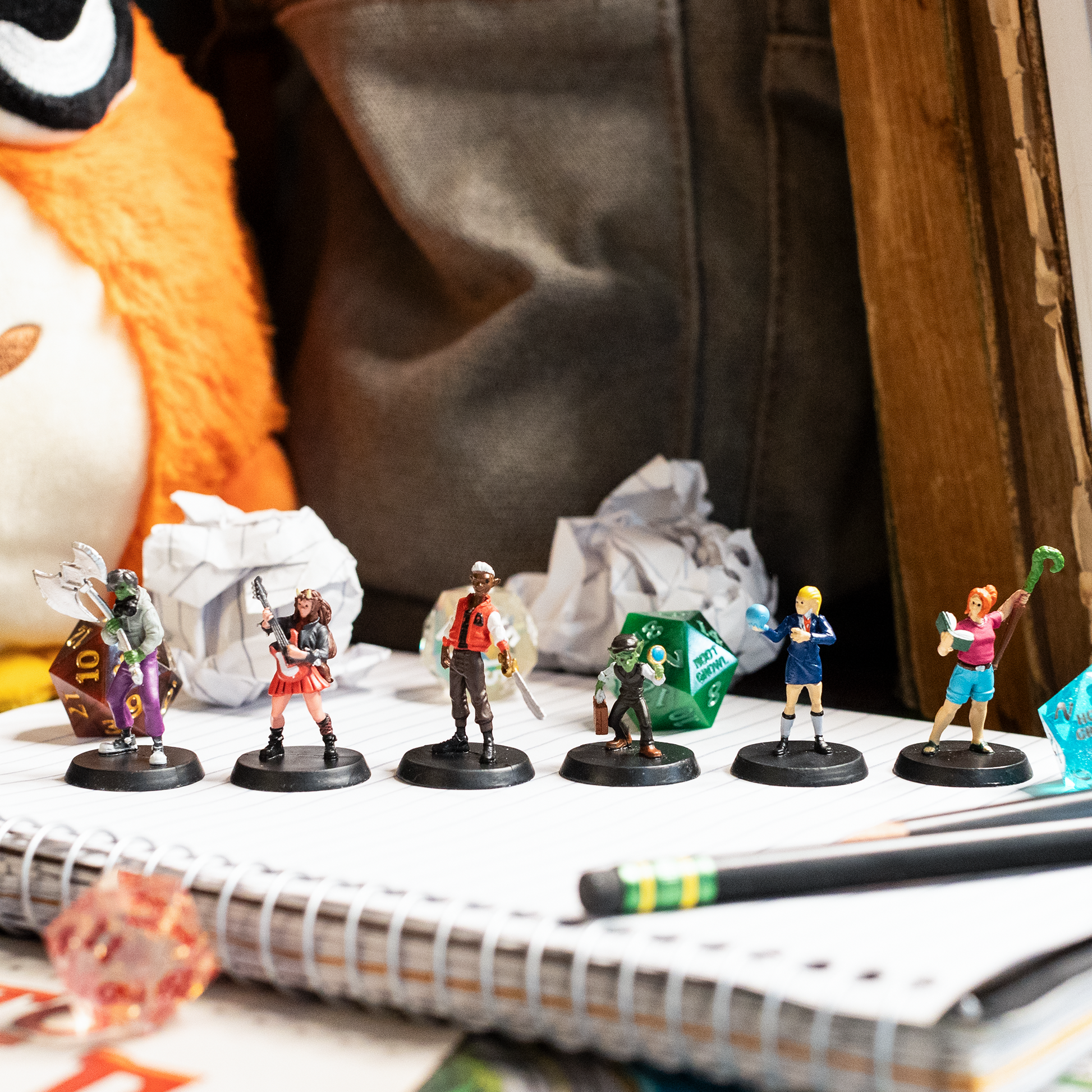 The Bad Kids of Dimension 20: Fantasy High are back and they’re smaller than ever! Sporting their freshman year looks, this set of 6 miniatures can be purchased as pre-painted or unpainted so you can go wild customizing them according to your headcanon!