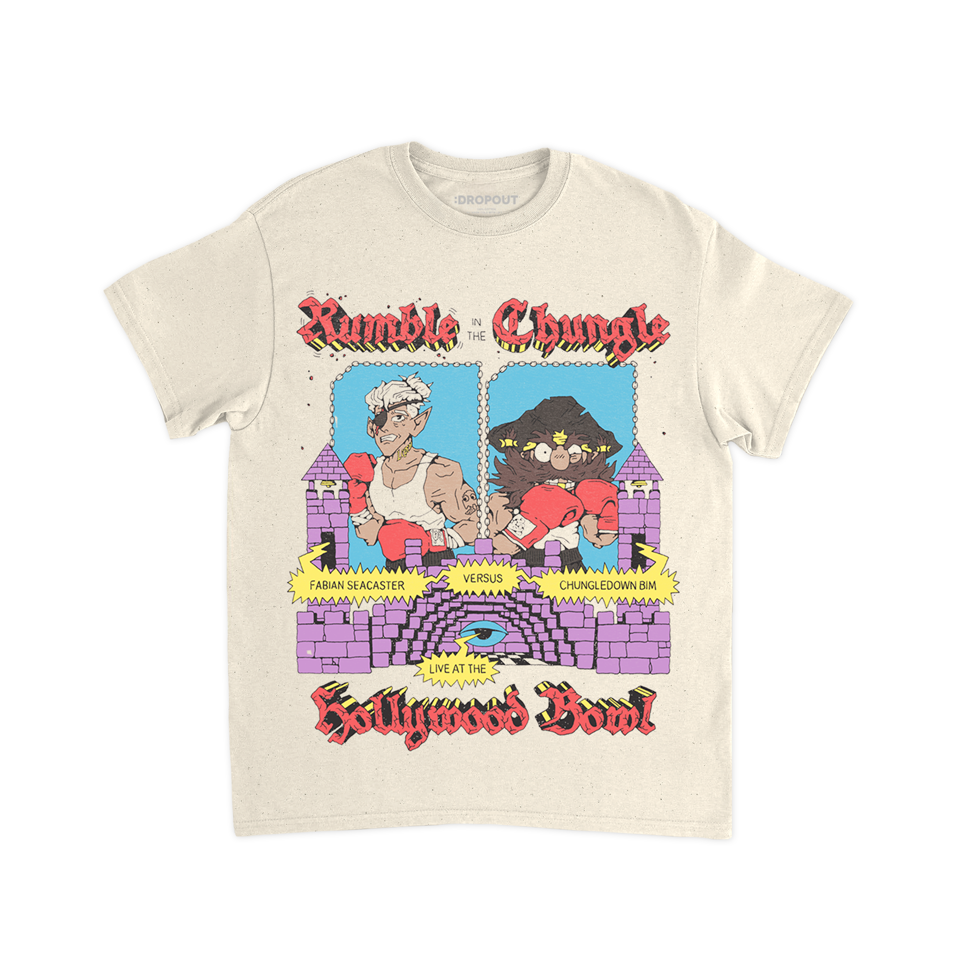 This T-shirt features an image of a character from Fantasy High that is now canonically dead. You’ll have to guess which one though, or just watch the recording of Dimension 20 Live: Battle At The Bowl if you must know who! Art by Connor Tomatoes @connortomatoes