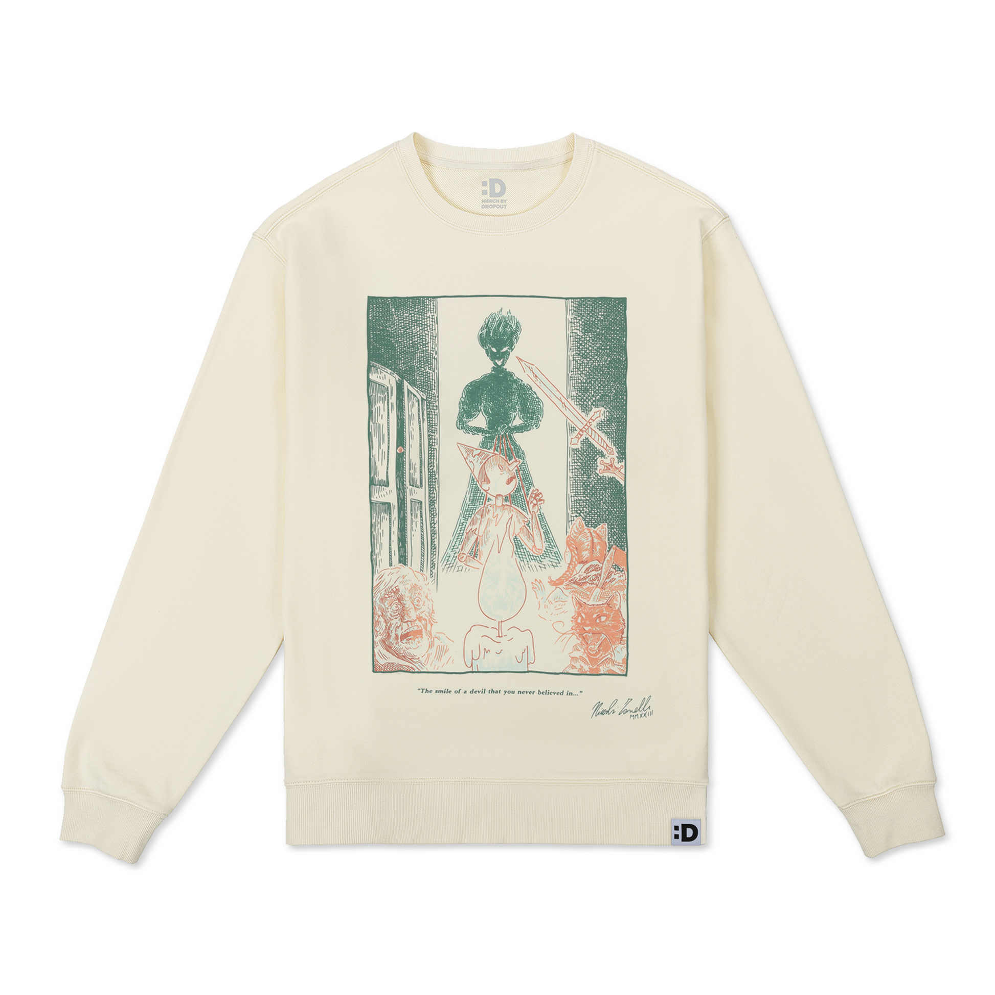 There are a lot of tense moments in Dimension 20: Neverafter, but we’re hard-pressed to think of scenarios that can elicit a more harrowing reaction from the cast than the phrase “The Smile of a Devil That You Never Believed in.” Share the terror with the folks around you with this crewneck sweatshirt, featuring art by Niccolò Tonelli @fumettonelli