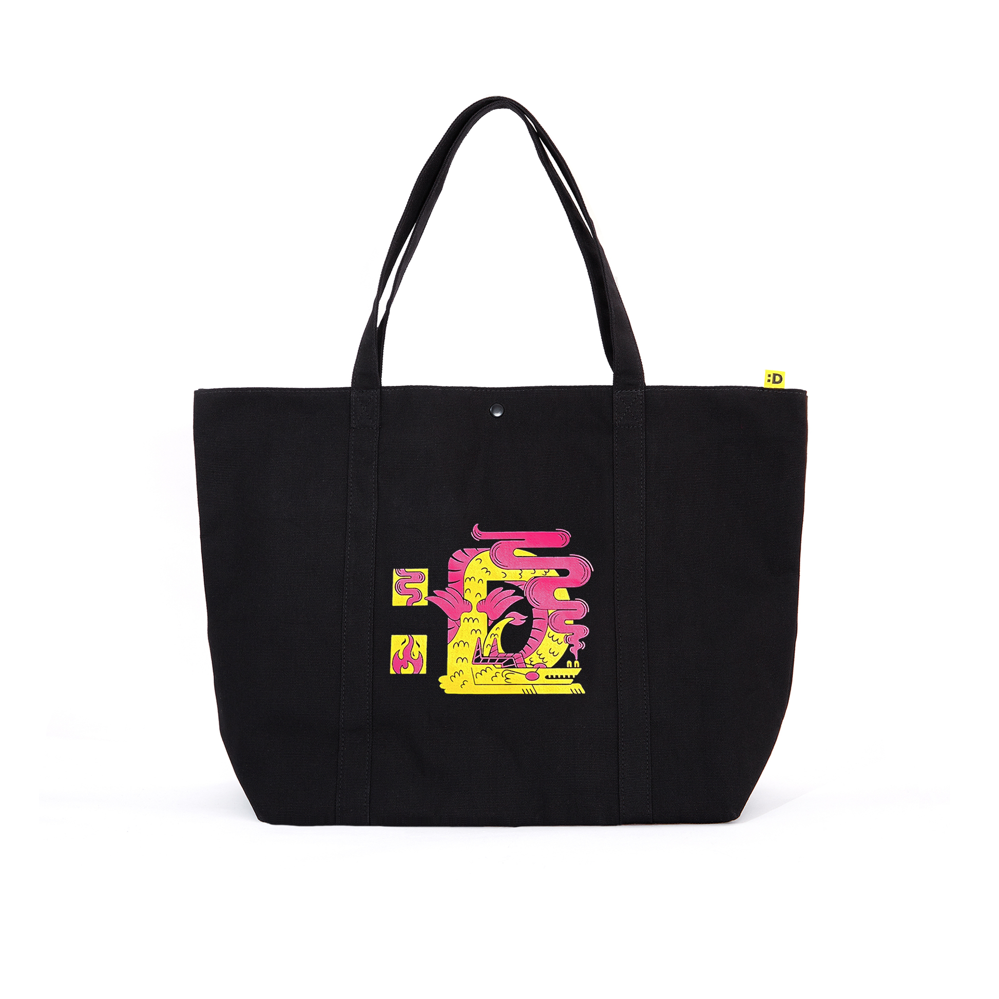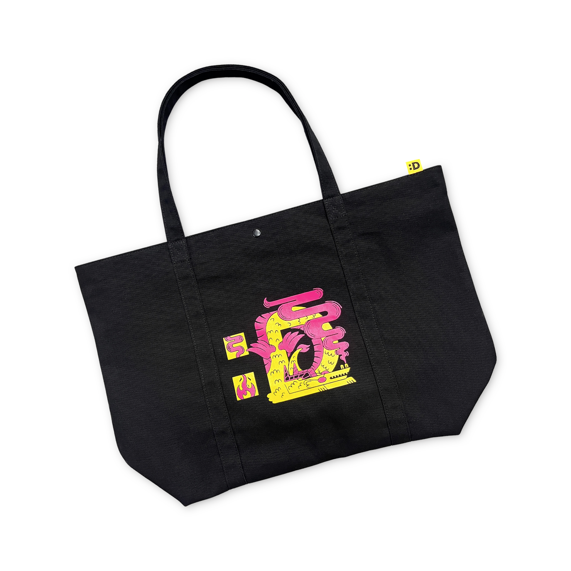 Featuring a large capacity and waterproof interior, somehow the dragon graphic inspired by El Dragón from the Cash ’N Guns episode of Parlor Room isn’t the coolest thing about this tote bag. Art by Christina Pepper Moliterno @hipepper